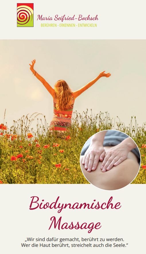 Die Biodynamische Massage ist ein sanfter Weg, festgehaltene Energien und Verhärtungen zu lösen, die Selbstregulationsfähigkeit des Körpers anzuregen und seine natürliche Vitalität wiederherzustellen. Sie ist anzuwenden als begleitende und stärkende Methode in schwierigen und belastenden Lebenssituationen, aber auch als vorbeugende Massage zur Entspannung und Regeneration.